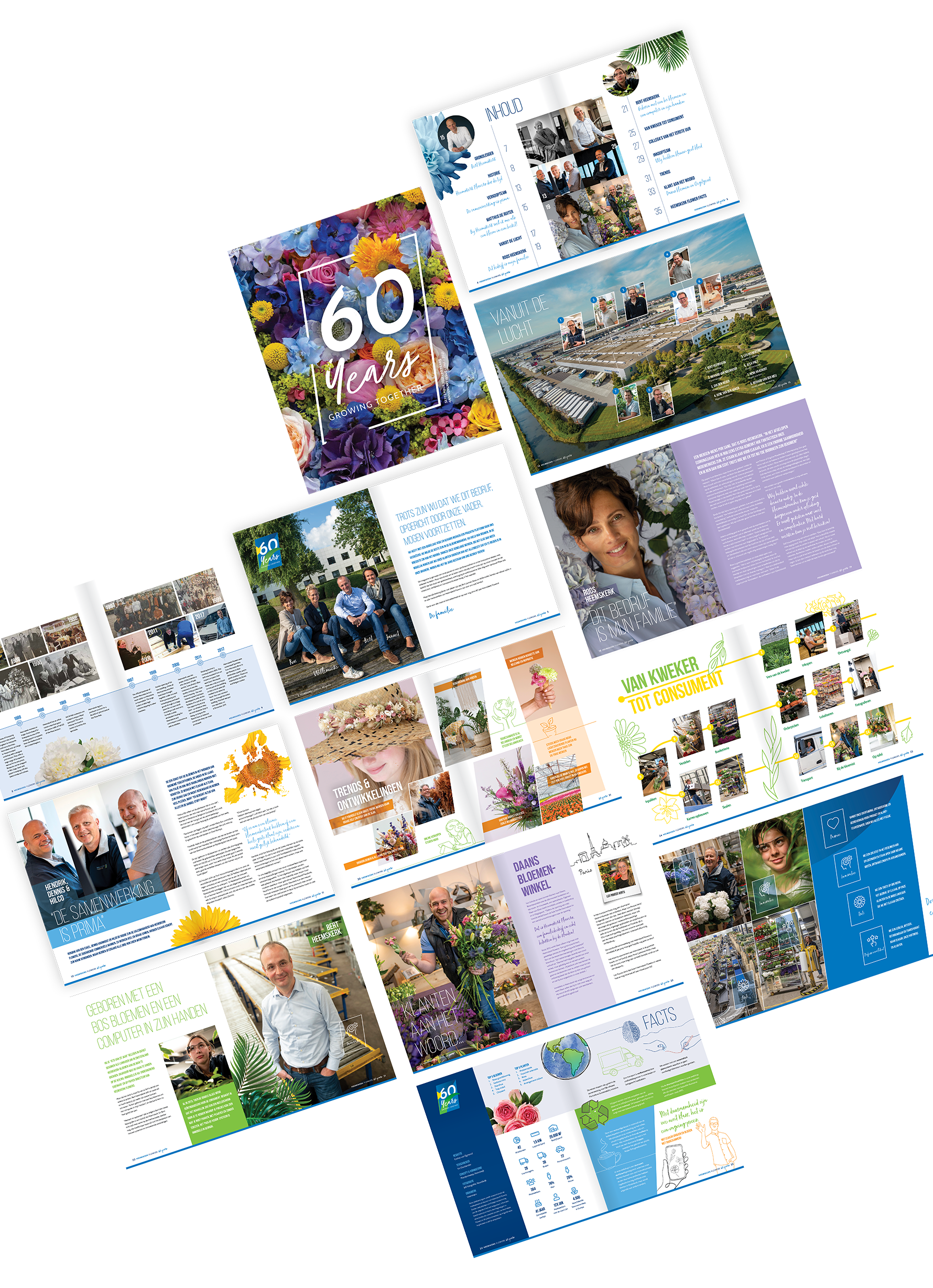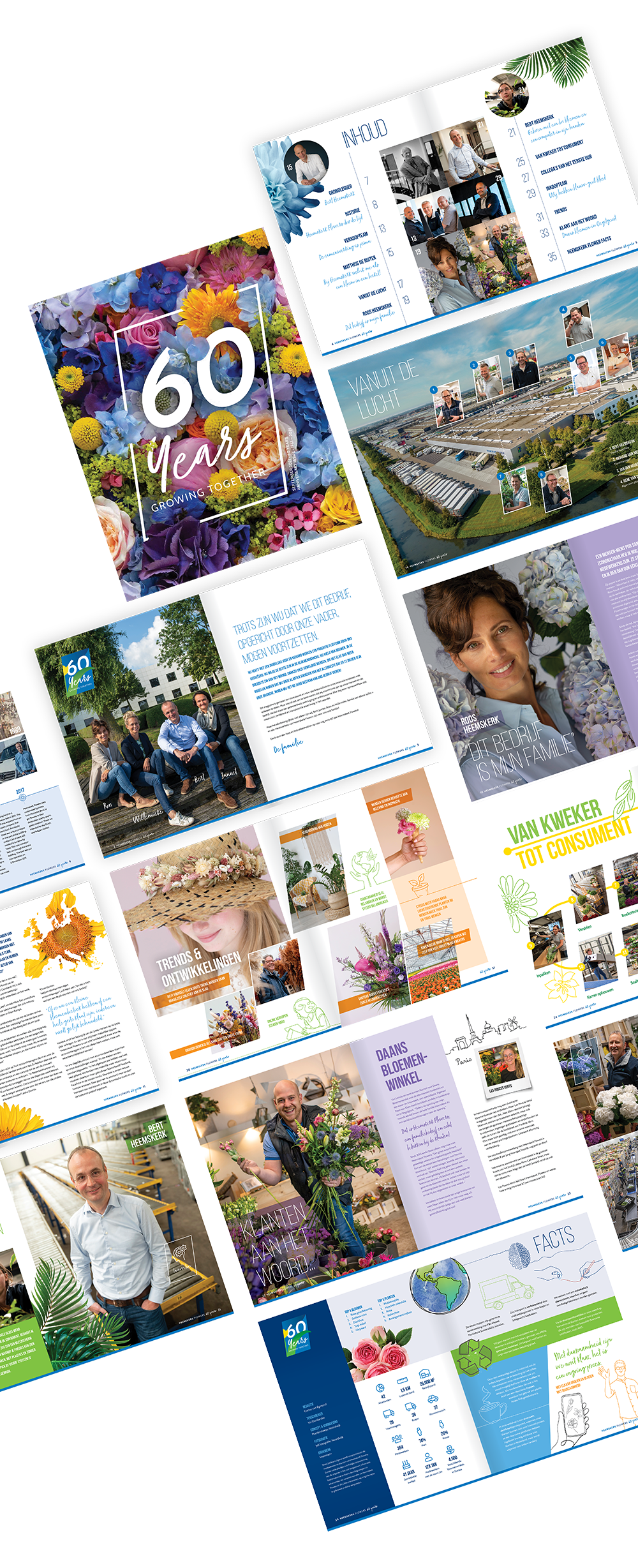 Naar aanleiding van het 60-jarig bestaan van dit mooie bedrijf zijn wij begonnen met het maken van een jubileummagazine. Van redactie tot concept, van fotografie tot vormgeving. Het hele magazine hebben we samen met de klant bedacht en ontworpen. Wat een feest om dit met deze leuke mensen uit te mogen voeren!