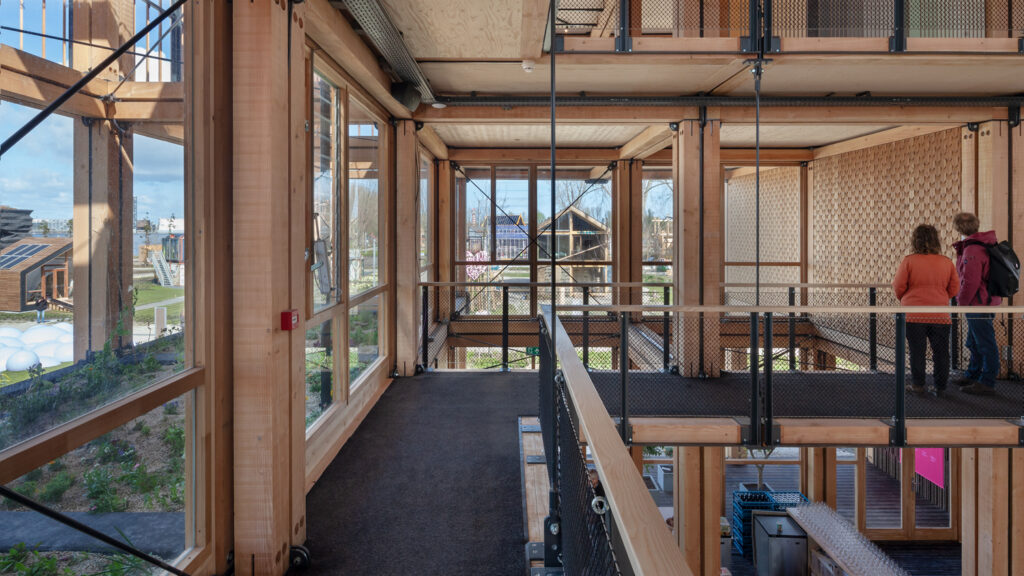 Verder heeft het paviljoen 7 innovaties die laten zien dat het op dit moment al mogelijk is om op industriële schaal woningen, scholen en kantoren te ontwikkelen die volledig circulair, biobased, energieneutraal en in nauwe samenhang met de natuur zijn.